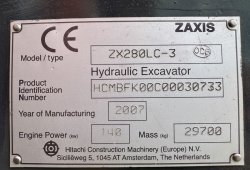 Model: HITACHI ZX280LC-3